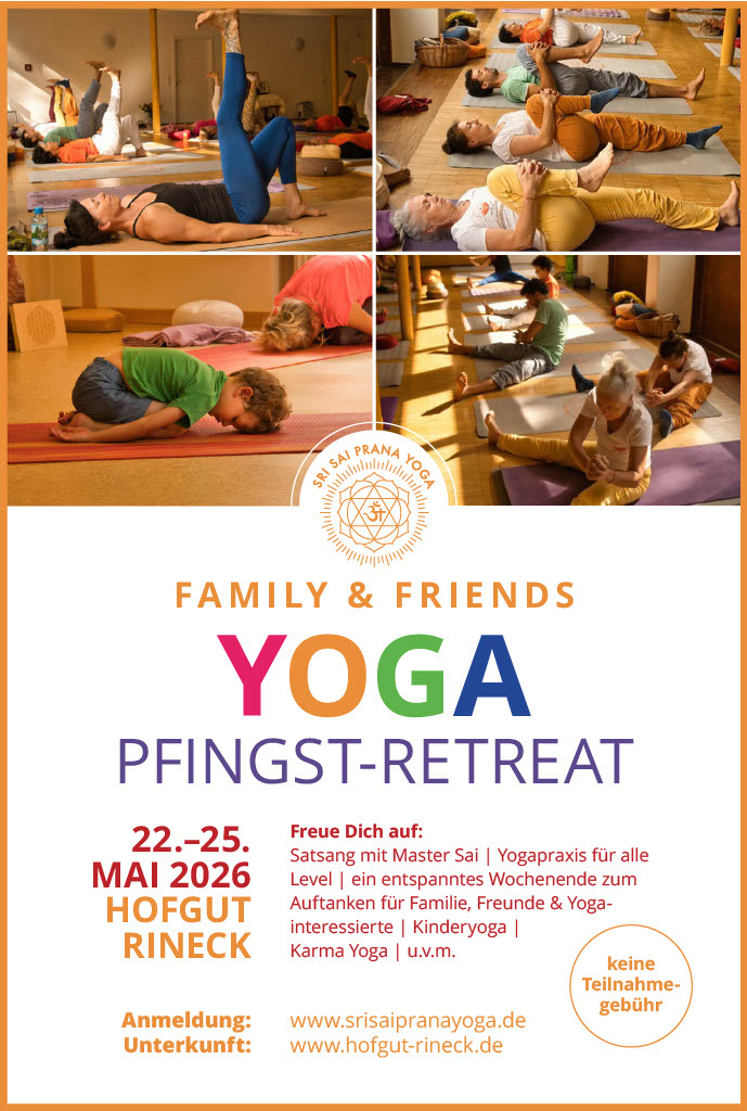 hiermit laden wir dich und deine Lieben zum Sri Sai Prana Yoga Family & Friends als Pfingst- Retreat ein